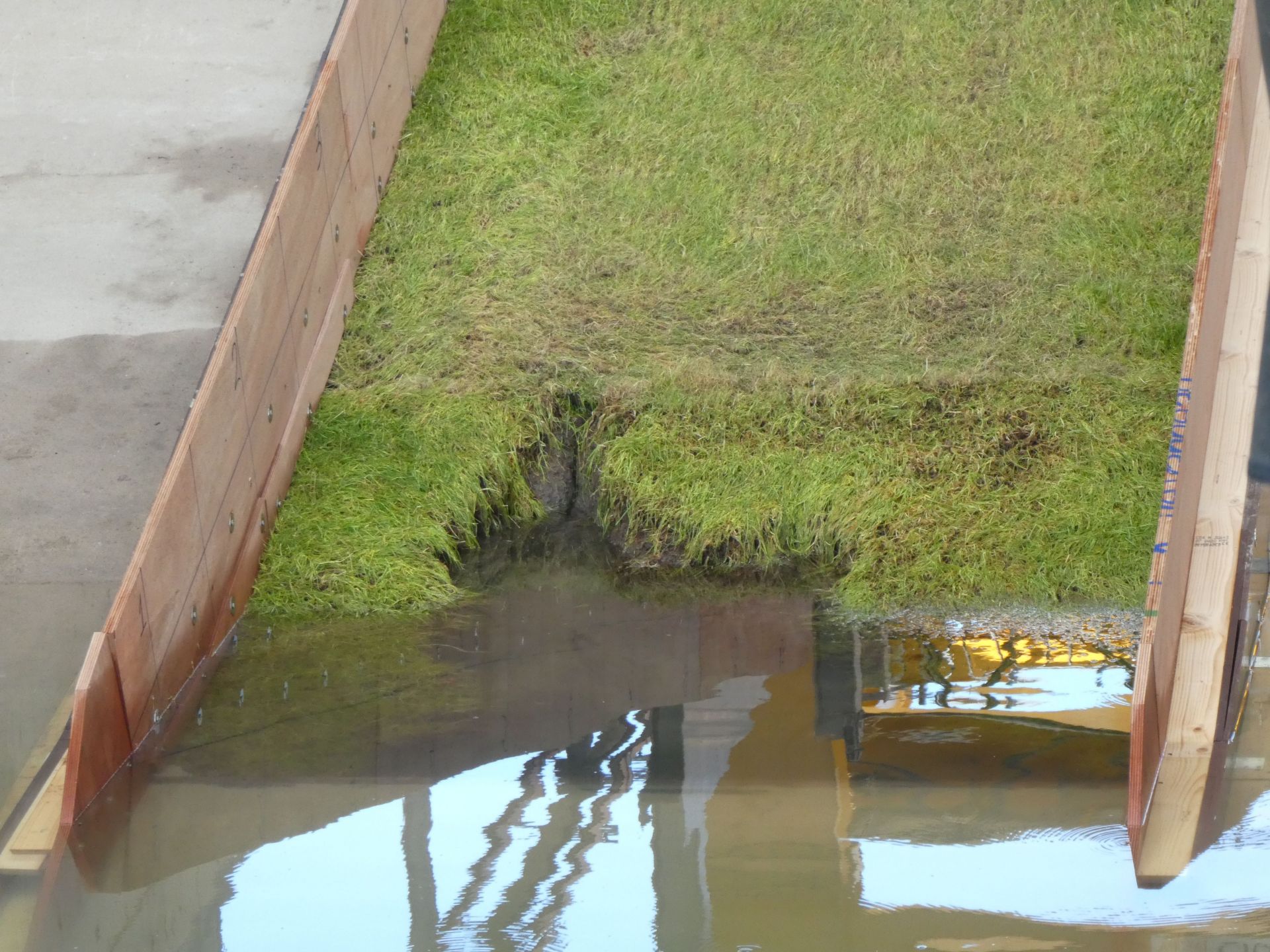In opdracht van de waterschappen voert Deltares de komende maanden proeven uit in de Deltagoot. Daar heeft Deltares de dijk van Noorderzijlvest en het Wetterskip op ware grootte nagebouwd. Grote blokken klei met gras zijn van de dijken gestoken en naar de Deltagoot gebracht. Nu staan er 4 verschillende modelopstellingen; 2 passend bij de dijk Lauwersmeerdijk-Vierhuizergat (variërend in kleikwaliteit) en 2 conform de dijk Koehool-Lauwersmeer (variërend in bermhoogte). Tijdens de proeven meet Deltares de erosie¬snelheid en het erosieprofiel op het boventalud, en de mate waarin aangetast gras sneller erodeert na een extreem droge en hete zomer. De proeven worden uitgevoerd met een constante waterstand en golfhoogte.
